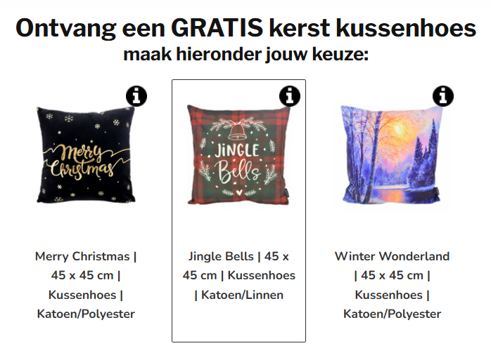 Bij iedere bestelling boven de €30 ontvang je nu gratis een kerst kussenhoes t.w.v. €9,95.