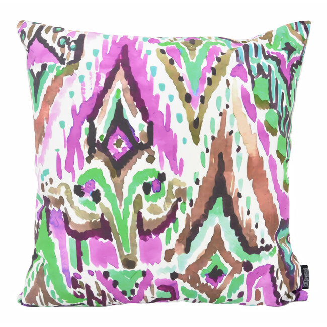 Deze kussenhoes met kleurrijke print past perfect in de kleurrijke interieurs van nu. Match ze samen met andere bijpassende kleuren kussens of gebruik deze éne als statement.