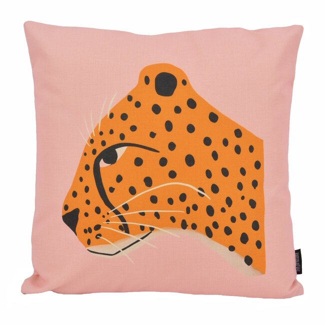 Roar! Heerlijk een kleurrijke kussenhoes met een panter/luipaard, een keer wat anders dan de standaard dierenprints! Deze kussenhoes geeft de woon- of slaapkamer een hippe touch.