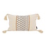 Geef je interieur een boho touch met deze stijlvolle kussenhoes! Gemaakt van stevig materiaal, afgewerkt met speelse kwastjes en een decoratieve jute band voor een natuurlijke, warme uitstraling. Perfect voor op de bank, stoel of bed.